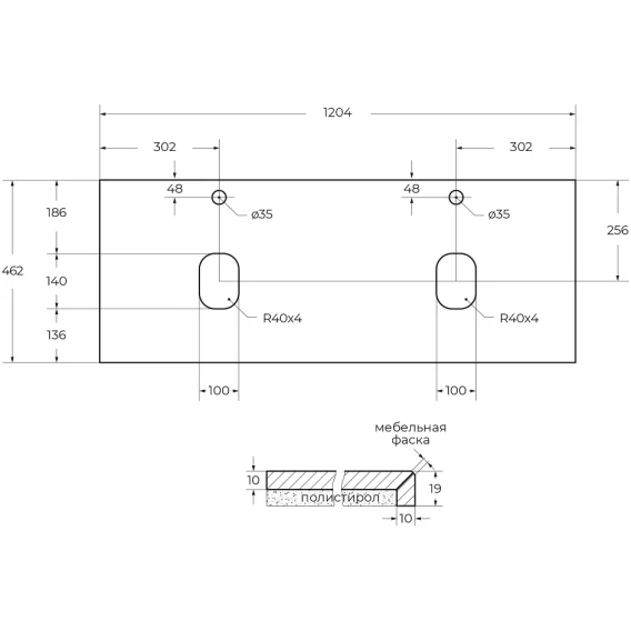 Столешница BelBagno KEP-120-2-MNO 120,4 см, Marmo Nero Opaco