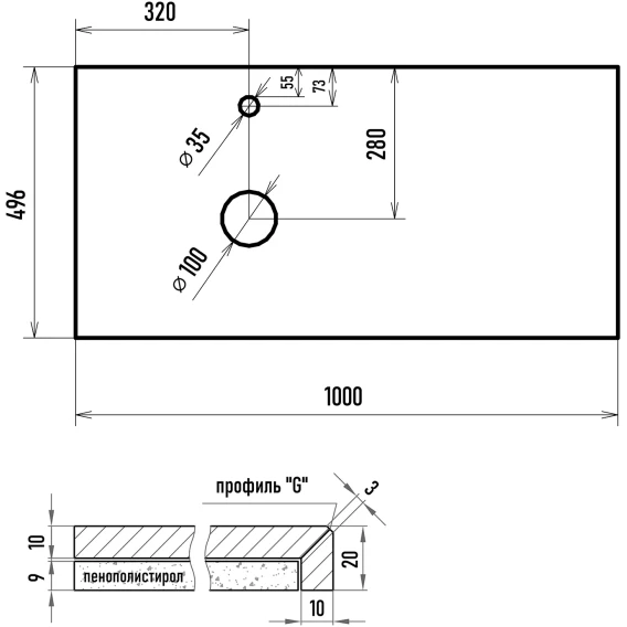 Душевой поддон из литьевого мрамора 100x70 см Good Door Flow ЛП00111