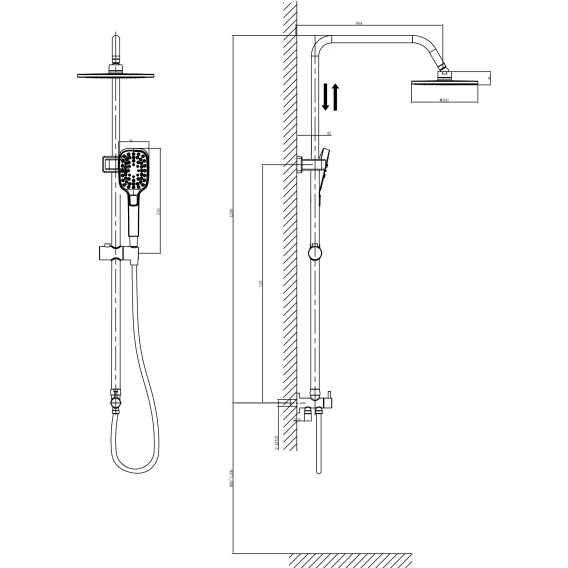 Душевой шланг, Душевая лейка, Держатель для душевой лейки, Верхний душ, Кронштейн, Штанга душевая