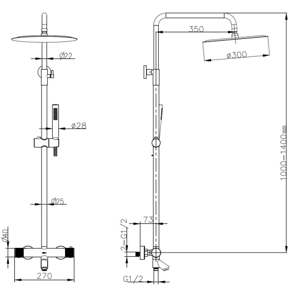 Аэратор, Металлическая розетка, Эксцентрики, Душевой шланг, Душевая лейка, Держатель для душевой лейки, Верхний душ, Кронштейн, Штанга душевая, Термостат