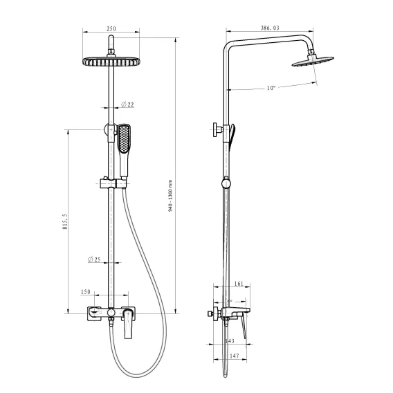 Душевая система 250 мм Boheme Venturo 378