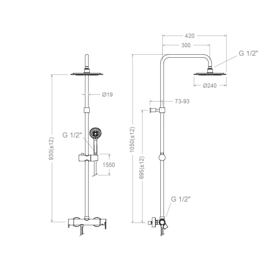 Душевая система 240 мм Ramon Soler Blautherm 937802RP240