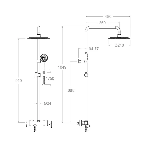 Металлическая розетка, Эксцентрики, Душевой шланг, Душевая лейка, Держатель для душевой лейки, Верхний душ, Смеситель, Кронштейн, Штанга душевая
