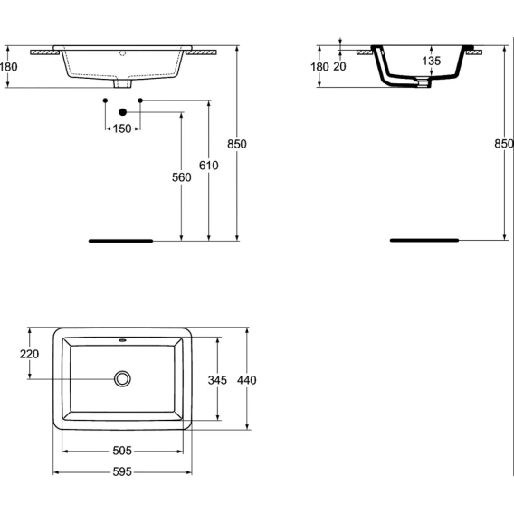 Раковина встраиваемая сверху 59 см Ideal Standard Strada K078001