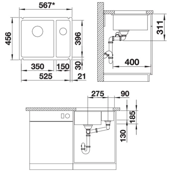 Кухонная мойка Blanco Subline 350/150-U InFino жасмин 523744
