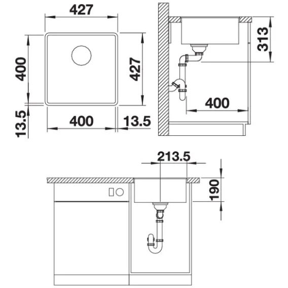 Кухонная мойка Blanco Subline 400-F InFino алюметаллик 523496