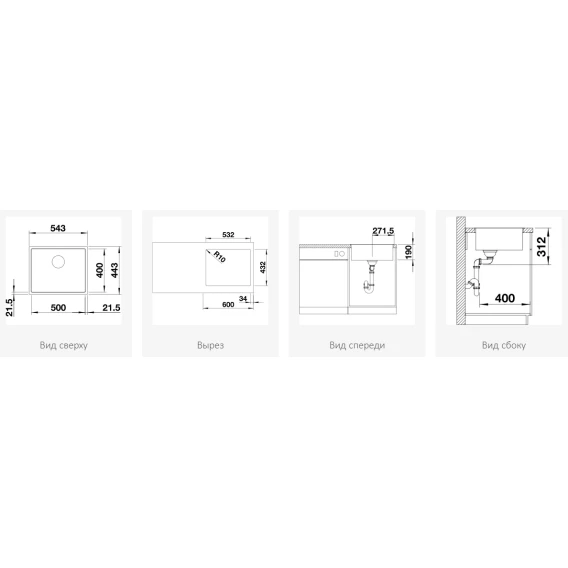 • Возможна установка под столешницу