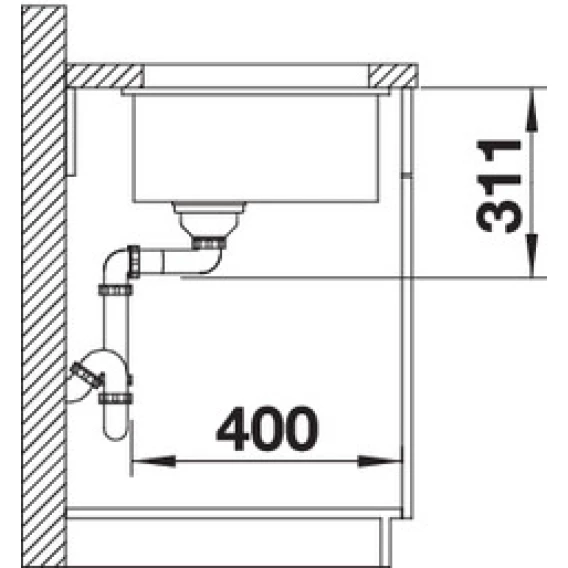 отводная арматура с клапаном-автоматом 3 1/2'' (требуется дополнительное отверстие Ø 14 мм в столешнице).