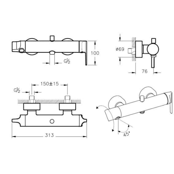 Смеситель для душа BelBagno Carin CAR-ESDM-CRM
