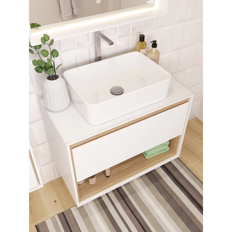 Тумба белый глянец/дуб 80 см Cersanit Louna SZ-LOU80-BL/Wh