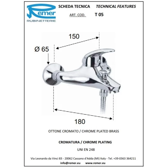 Смеситель для ванны Remer Ten T05