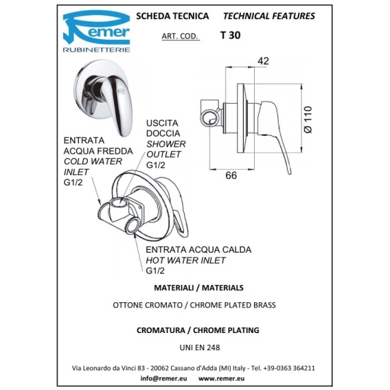 Смеситель для душа Remer Ten T30