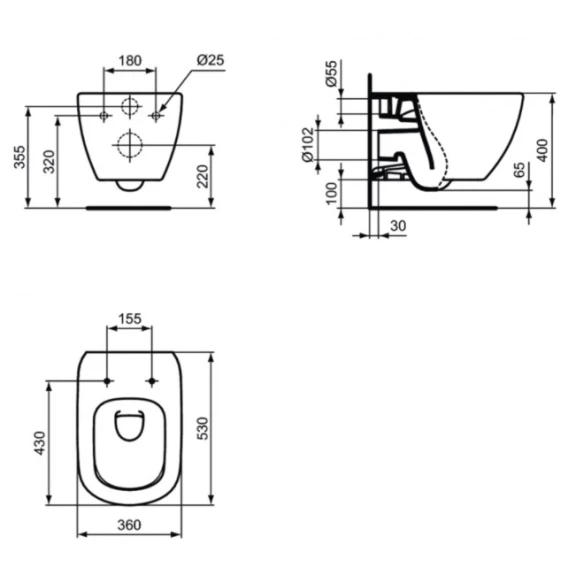 - T0079V3 TESI AquaBlade® Подвесной унитаз, глубокий смыв, с крепежом TT0299598 (для полностью скрытого монтажа);