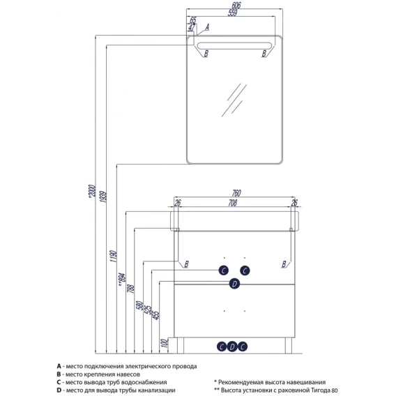 Тумба с раковиной темно-коричневый 80 см Акватон Америна 1A1694K1AM430