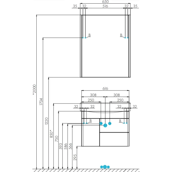 Комплект мебели белый глянец 65 см Акватон Беверли 1A235301BV010 + 1WH302501 + 1A237002BV010