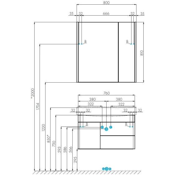 Комплект мебели белый глянец 80 см Акватон Беверли 1A235501BV010 + 1WH302422 + 1A237102BV010