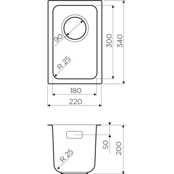 • Размер выреза под мойку: 170х400 мм., угловой радиус врезки 25 мм.