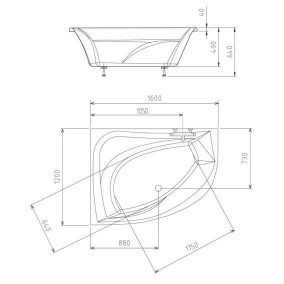 Акриловая ванна 160x120 см L Alpen Tanya 65119