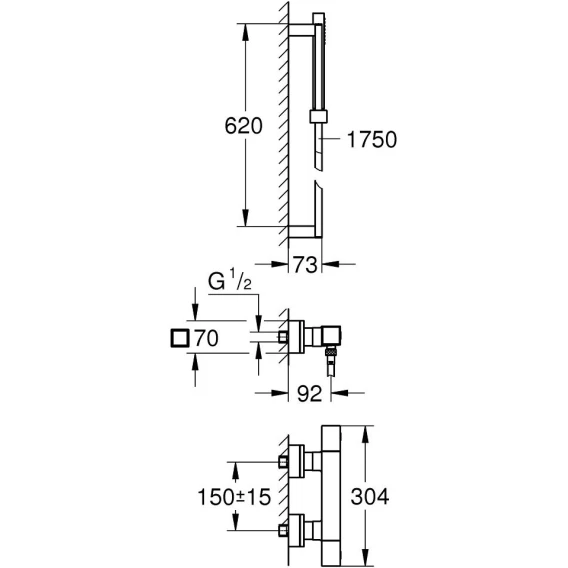 Металлическая розетка, Эксцентрики, Душевой шланг, Душевая лейка, Держатель для душевой лейки, Штанга душевая
