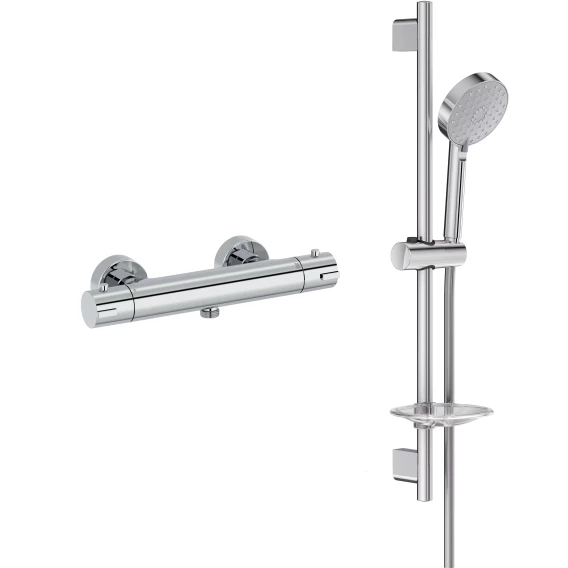 Термостат для душа Jacob Delafon Brive E24334-CP + E12907-CP с душевым гарнитуром, хром