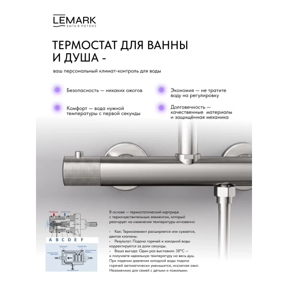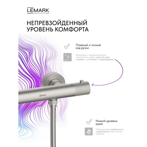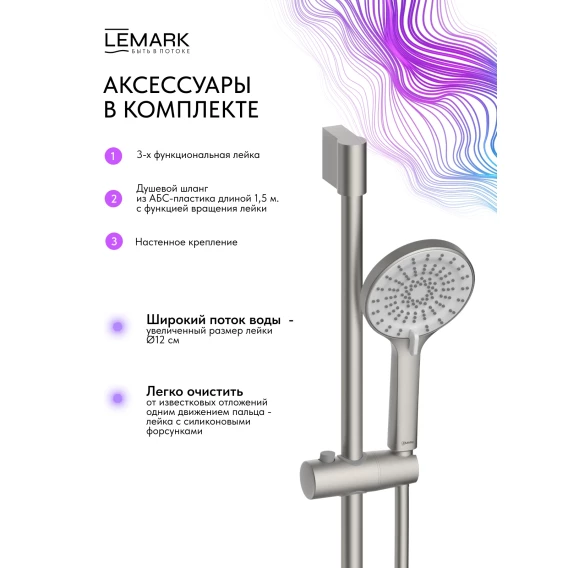 Термостат для душа Lemark Beluga LMF-8044B-BN с душевым гарнитуром, никель матовый