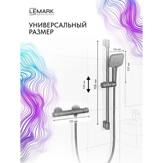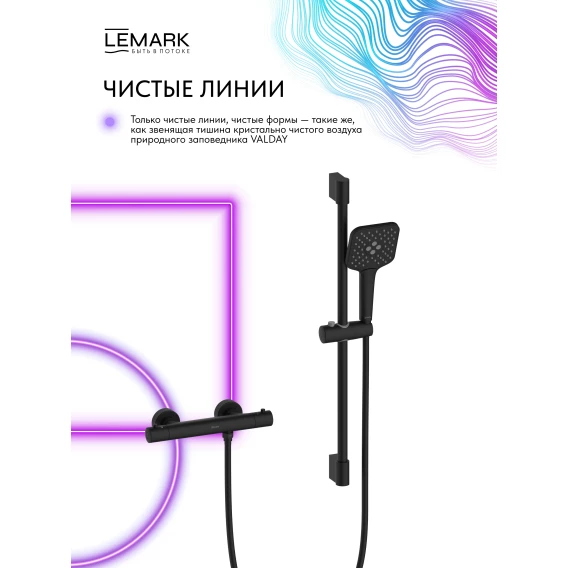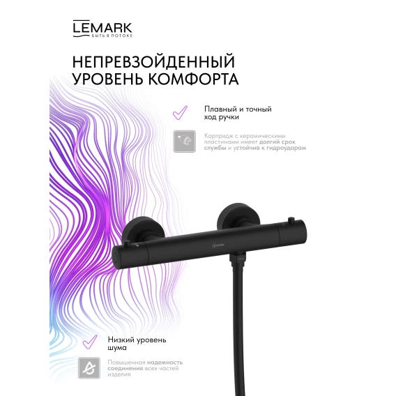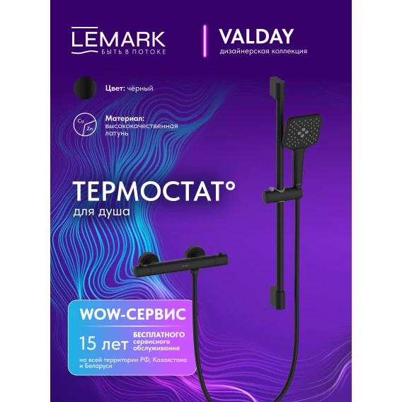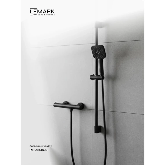 Термостат для душа Lemark Valday LMF-8144B-BL с душевым гарнитуром, черный матовый