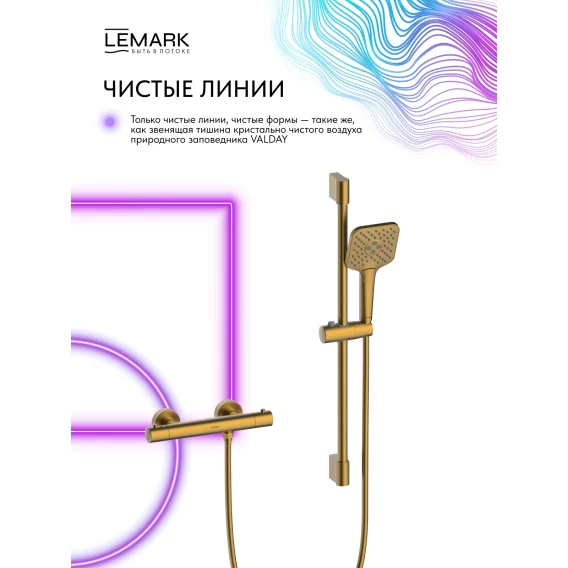 Термостат для душа Lemark Valday LMF-8144B-BRG с душевым гарнитуром, золотой матовый