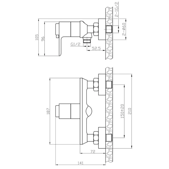 Металлическая розетка, Эксцентрики, Душевой шланг, Душевая лейка, Держатель для душевой лейки
