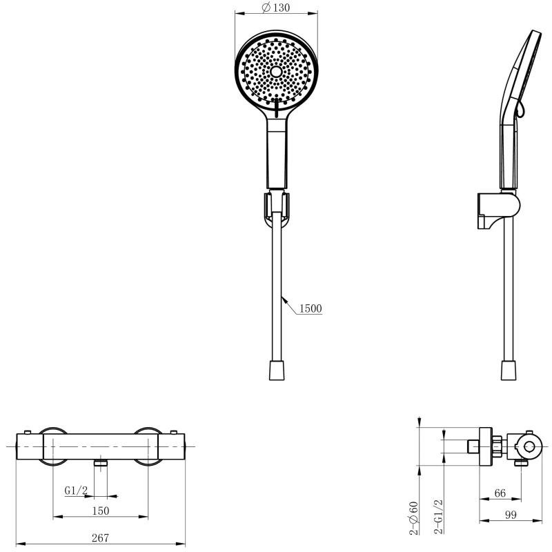 Термостат для душа Wonzon & Woghand Inn 3 WW-B2003-A-CR с душевым гарнитуром, хром