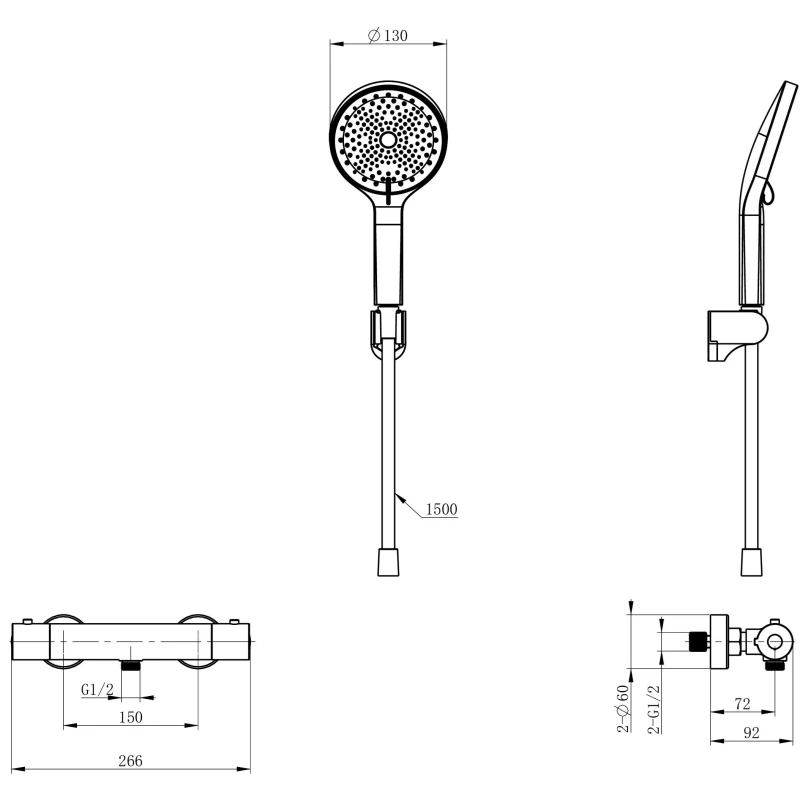 Термостат для душа Wonzon & Woghand Inn 3 WW-B2012-A-CR с душевым гарнитуром, хром