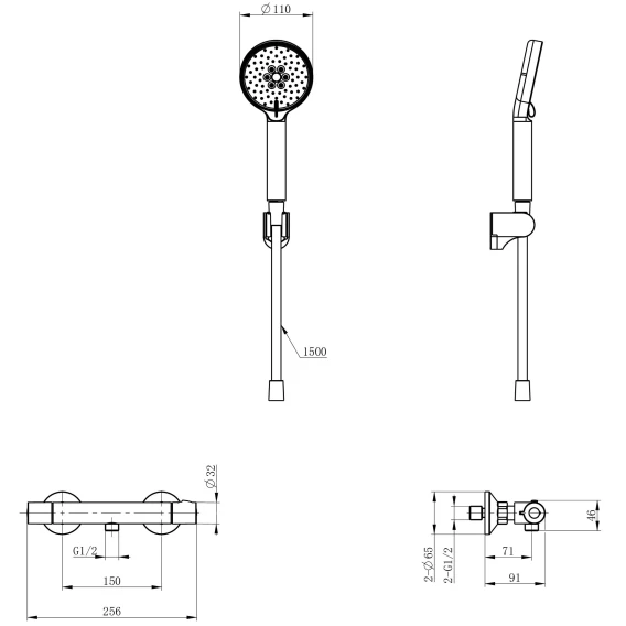 Металлическая розетка, Эксцентрики, Душевой шланг, Душевая лейка, Держатель для душевой лейки