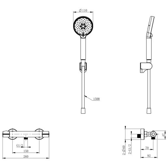 Металлическая розетка, Эксцентрики, Душевой шланг, Душевая лейка, Держатель для душевой лейки