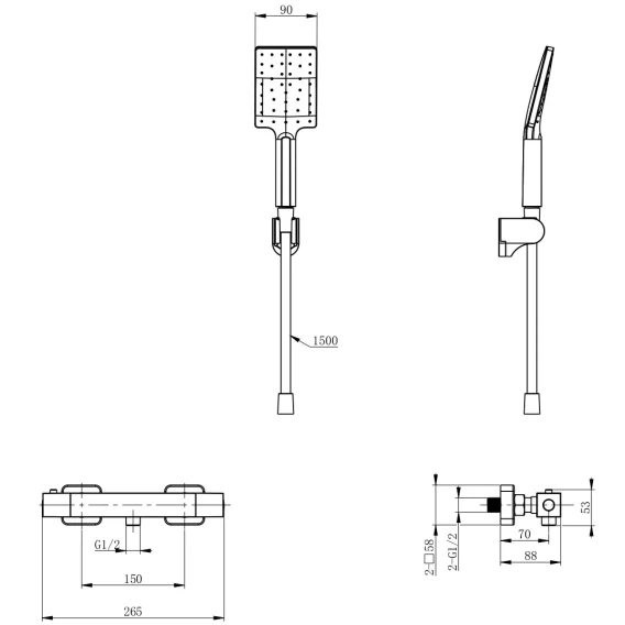 Термостат для душа Wonzon & Woghand Stay 3 WW-B2062-A-CR с душевым гарнитуром, хром