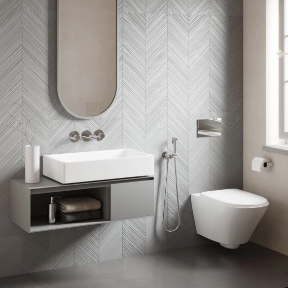 • Подача воды на гигиеническую лейку осуществляется нажатием кнопки, расположенной на корпусе держателя лейки.
