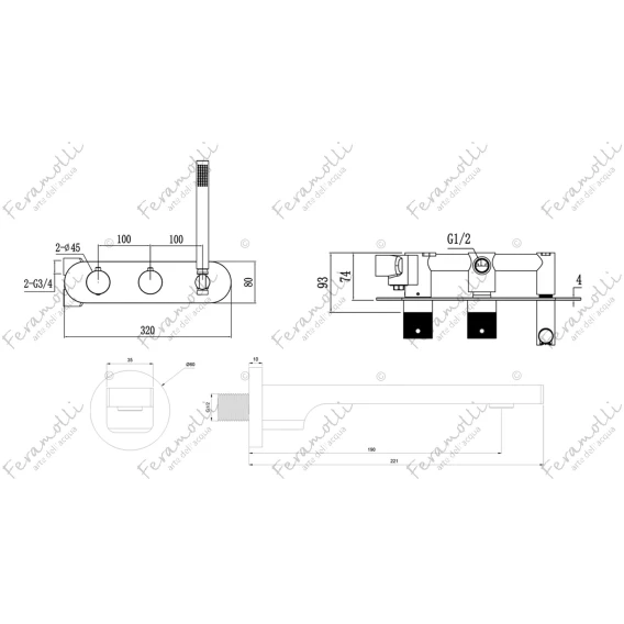 Термостат для ванны Feramolli Dante CSD1S встраиваемый, с душевым гарнитуром, никель матовый