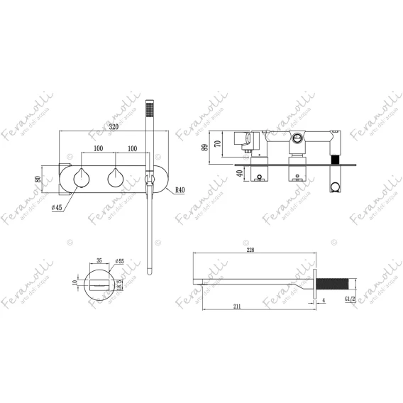 Аэратор, Душевой шланг, Душевая лейка, Подключение для душевого шланга с держателем, Излив, Скрытая монтажная часть