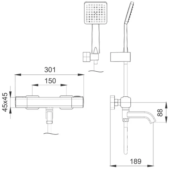 Термостат для ванны Gappo G3291 с душевым гарнитуром, хром