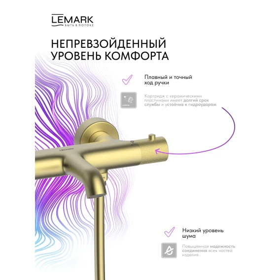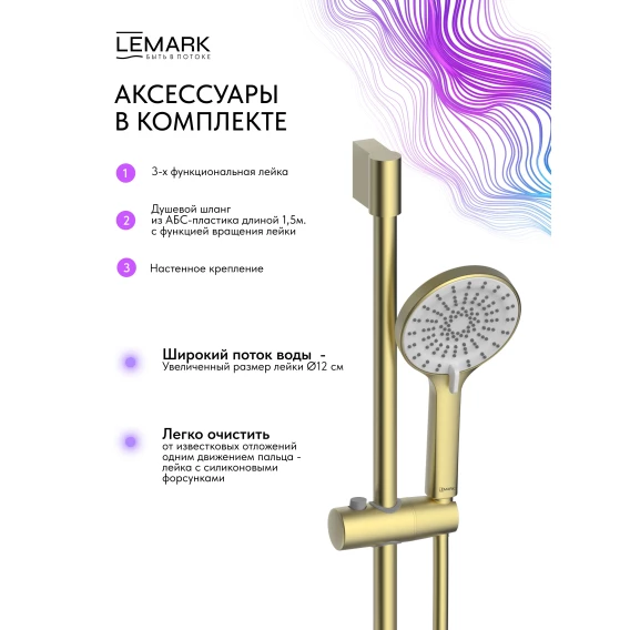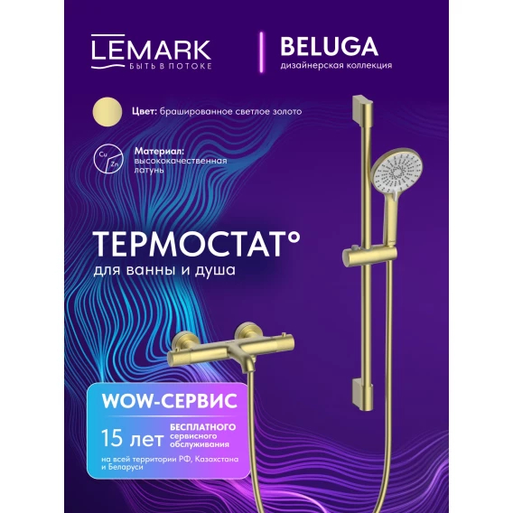 Термостат для ванны Lemark Beluga LMF-8042B-BRLG с душевым гарнитуром, светлое золото матовый