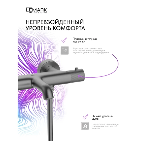 Термостат для ванны Lemark Beluga LMF-8042B-GM с душевым гарнитуром, графит матовый