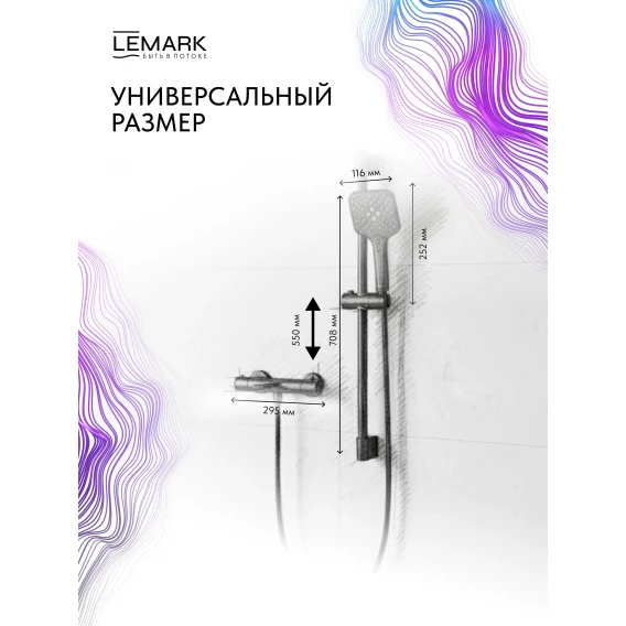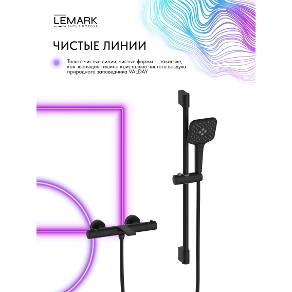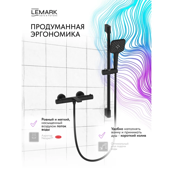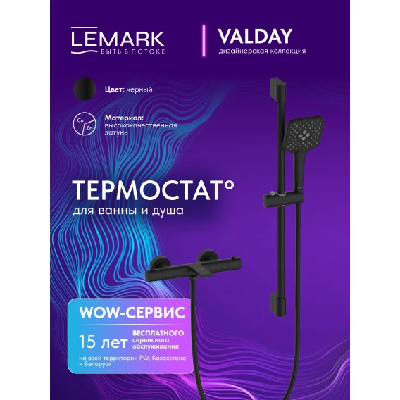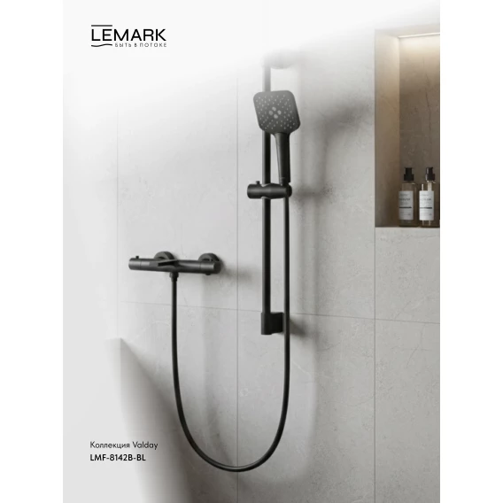 Термостат для ванны Lemark Valday LMF-8142B-BL с душевым гарнитуром, черный матовый