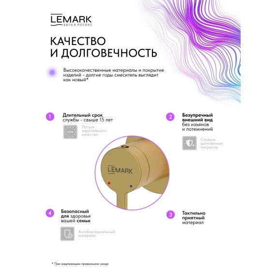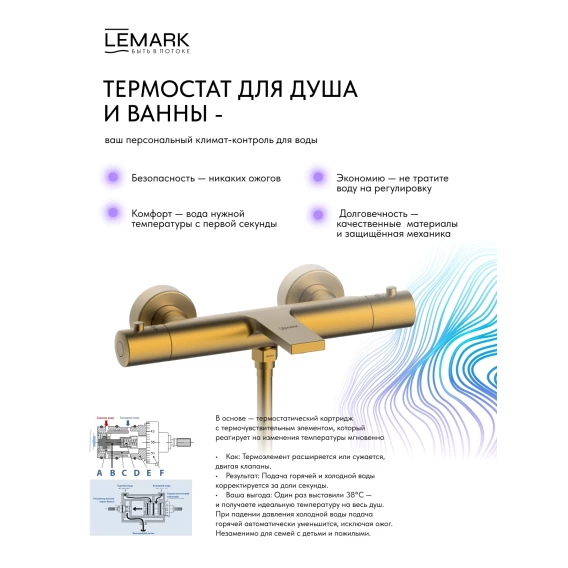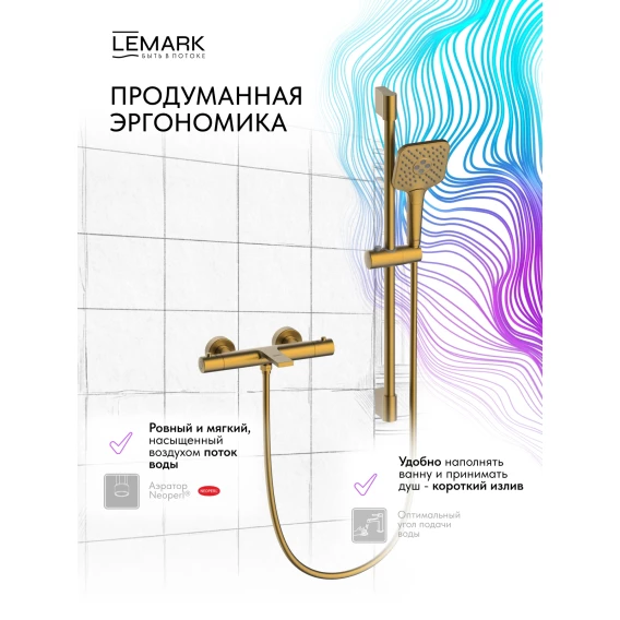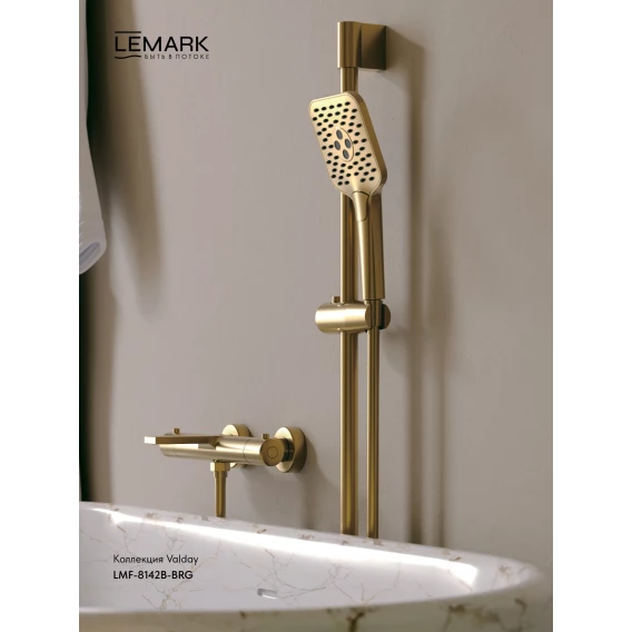Термостат для ванны Lemark Valday LMF-8142B-BRG с душевым гарнитуром, золотой матовый