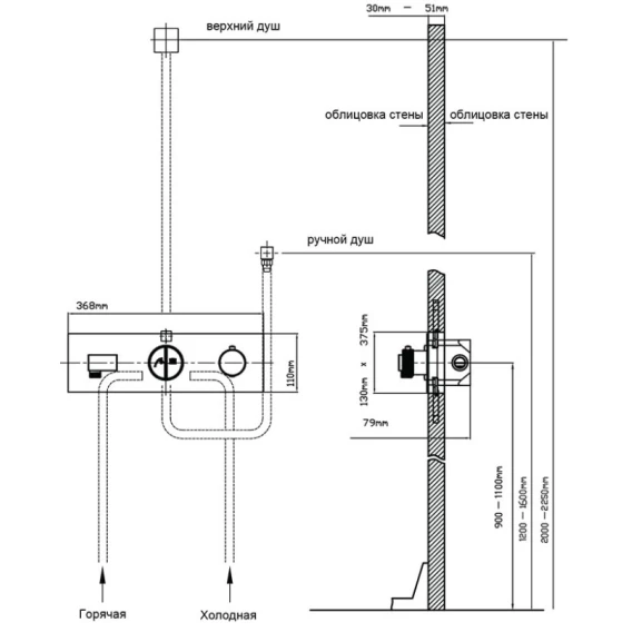 Подключение для душевого шланга с держателем, Скрытая монтажная часть