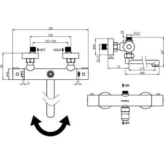 Термостат для ванны Voda T1031 универсальный, хром