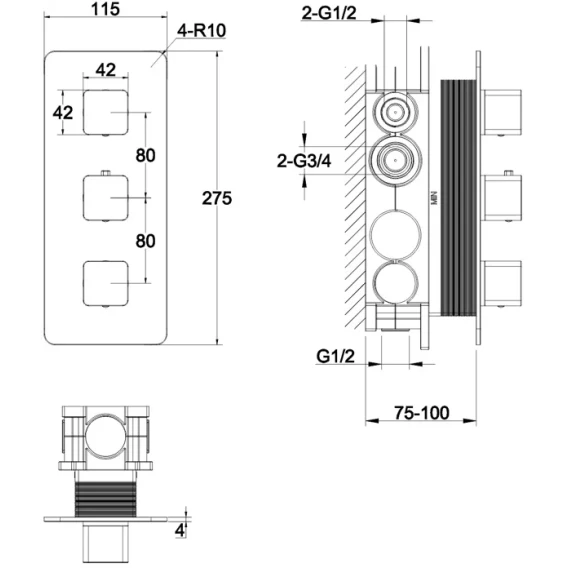 Термостат для ванны Whitecross X X1438NIB встраиваемый, никель матовый