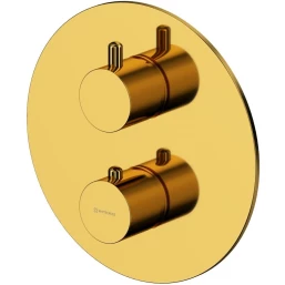 - размеры розетки: ø200 мм;- минимальная глубина для установки: 75 мм;- два входа (для горячей и холодной воды): 3/4”;- два выхода смешанной воды: 1/2”;- корпус смесителя: латунь;- рукоятка смесителя: латунь;- термостатический картридж с ограничителем на 38°C: VERNET;- запорно-переключающий вентиль;- пропускная способность при давлении 3 Бар:1) поток №1 - 20,3 л/мин2) поток №2 - 20,3 л/мин- встраиваемая часть в комплекте.