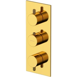 - размеры розетки: 115х275 мм;- минимальная глубина для установки: 75 мм;- два входа (для горячей и холодной воды): 3/4”;- три выхода смешанной воды: 1/2”;- корпус смесителя: латунь;- рукоятка смесителя: латунь;- термостатический картридж с ограничителем на 38°C: VERNET;- запорно-переключающий вентиль;- пропускная способность при давлении 3 Бар:1) поток №1 - 21 л/мин2) поток №2 - 21 л/мин3) поток №3 - 22 л/мин- встраиваемая часть в комплекте.