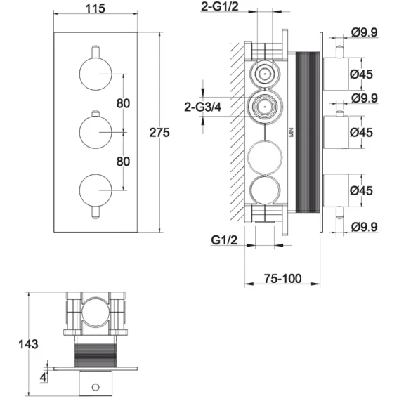 Термостат для ванны Whitecross Y Y1238NIB встраиваемый, никель матовый