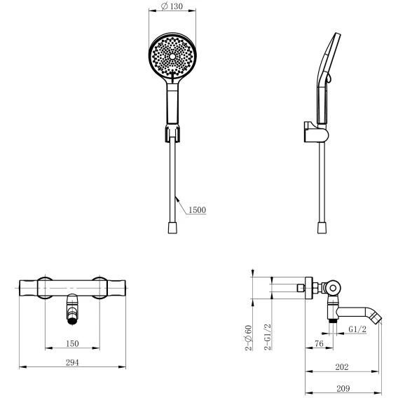 Аэратор, Металлическая розетка, Эксцентрики, Душевой шланг, Душевая лейка, Держатель для душевой лейки