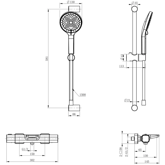 Аэратор, Металлическая розетка, Эксцентрики, Душевой шланг, Душевая лейка, Держатель для душевой лейки, Штанга душевая