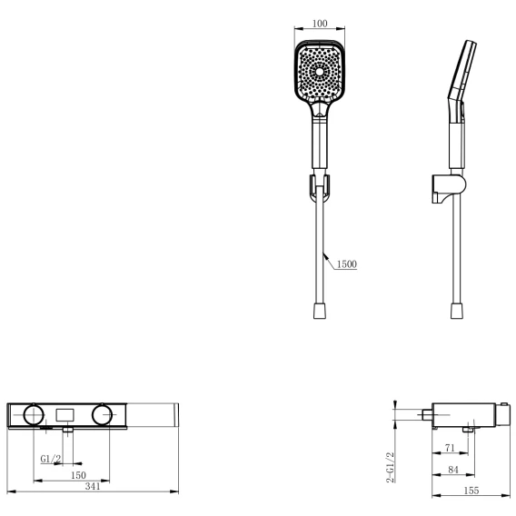 Аэратор, Эксцентрики, Душевой шланг, Душевая лейка, Держатель для душевой лейки, Полочка
